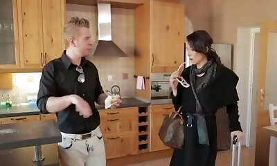A glamours model gets plowed all around her apartment