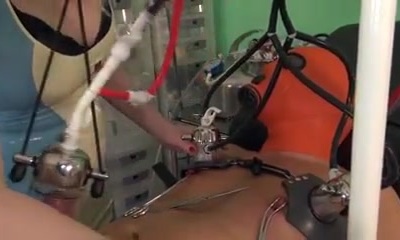 Penetrated to orgasm by air powered hook-up machine