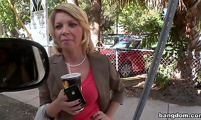 Horny Blondie MILF Romps in the Back of a Van with Her Clothes On