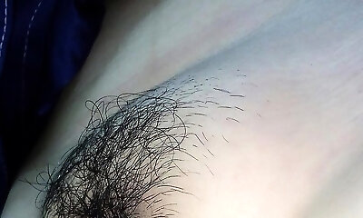 My cootchie hair has grown! Showing my hairy pussy in closeup.