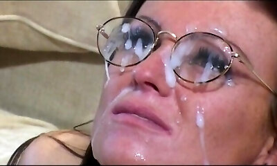 Humungous cumshot on her glasses
