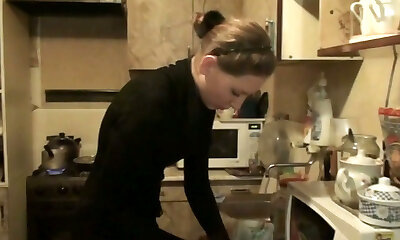 Perfect wife find time to clean the house and to passionately ride her huge ass on her spouse's honk