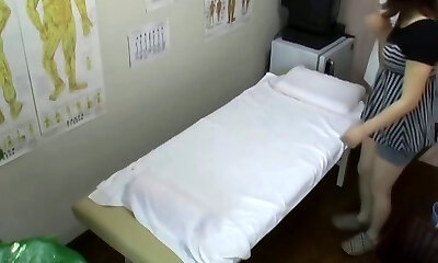 Chubby Japanese teen enjoys a voyeur erotic massage joy