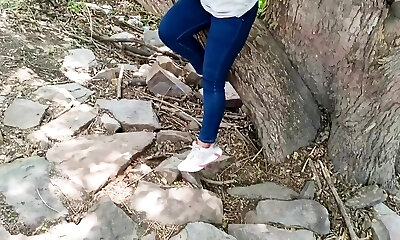 Cock-squeezing hottie handles dick like a depraved whore in outdoor adventure