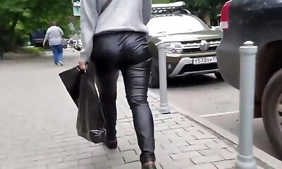 Sweet female's ass in leather pants