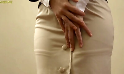 Office milf Allison peels off her pantyhosed panties and shows her secret
