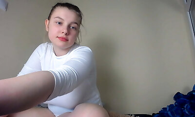 Kinky platinum-blonde girl with a enormous ass, Barbora is spreading her pink pussy, while alone at home