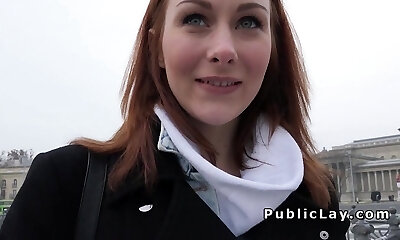 Top notch ginger-haired hottie has fun with her Boyfriend in shopping mall